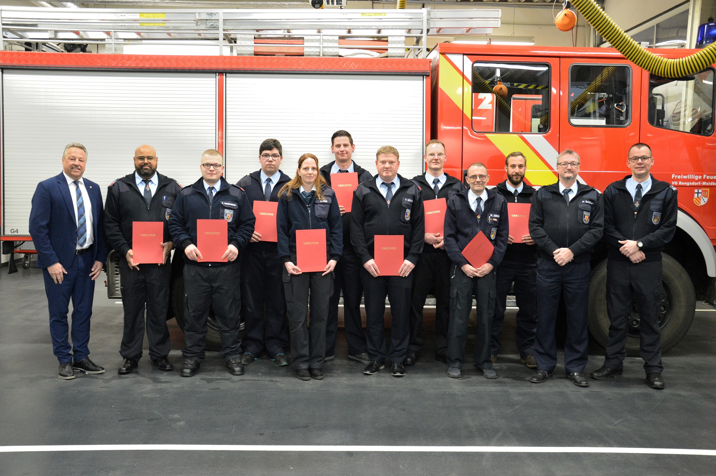 Als neues Mitglied wurde Steven Kaul zum Feuerwehrdienst verpflichtet. Weiter konnten Florian Tempel zum Feuerwehrmann, Marc Sachs und Pascal Gesellchen zum Oberfeuerwehrmann sowie Kevin Bogdanovic, Angelina Henn, Michael Jungmann und Florian Schäfer zum Löschmeister befördert werden. Imed Merghad wurde zum Hauptbrandmeister ernannt.